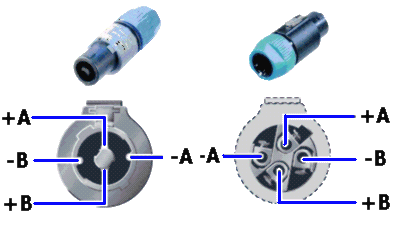 speakons Men sluit A+ en A- aan bij sommige speakers moet ook B+ B- aangesloten zijn hierbij durft men deze klemmen te bruggen. Dus let zeer goed op bij het aansluiten komt men dan a en b in paralel te staan . Hierbij halveert in het beste geval je impedatie als Je vertrekt van 8ohm ga je naar 4ohm vertrek je van 4ohm dan bekom je 2ohm. Let goed op je vermogen en je versterker (oude versterkers kunnen meestal geen 2ohm aan )