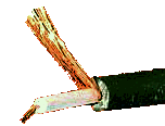 - de afscherming gevlochten fijn koperdraad daarin heb je twee soorten met textiel en zonder let op je omvlechting kan zonder textiel je binnen isolatie afsnijden bij slecht oprollen van de kabel